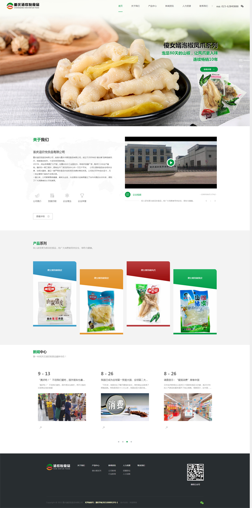 重慶涵欣悅食品有限公司,前身為重慶市展冠食品有限公司。創立于2009年的“傻女婿”品牌,其泡椒鳳爪、泡椒豬皮系列,十余年來持續熱銷。2017年,因業務需要擴大產能,在重慶白沙工業園區購地并自建廠房,毗鄰江小白生產基地。擁有生產廠房及研發中心共一萬五千平米。