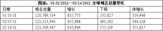 (圖2) 01/31/11-02/14/11 全球域名增減情況