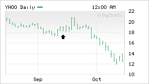 雅虎股價表現圖(箭頭指向處為9月15日當天股價表現)(騰訊科技配圖)