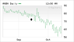 Amazon在9月15日時收于77.34,市值331億美元;11月20日收盤價35.03美元,市值150.2億美元,市值縮水180.8億美元,縮水幅度達55%。