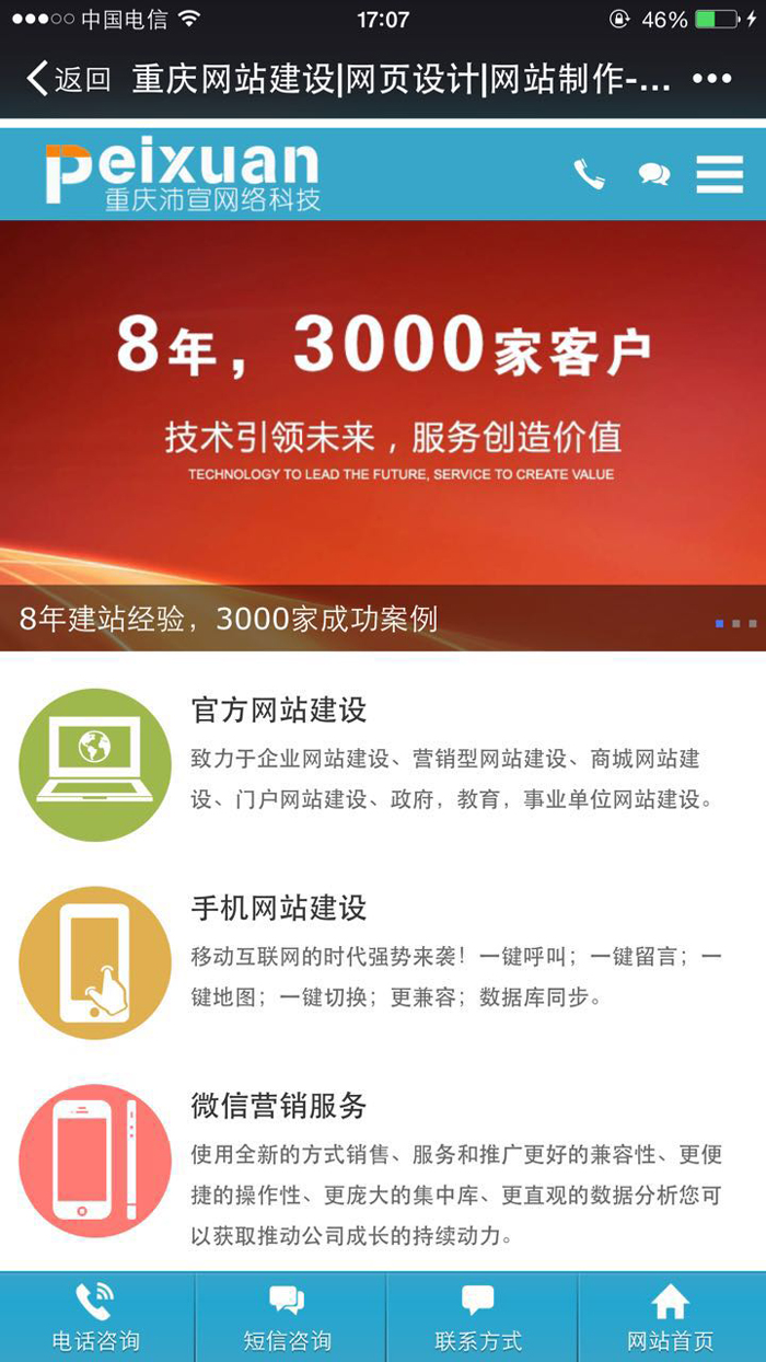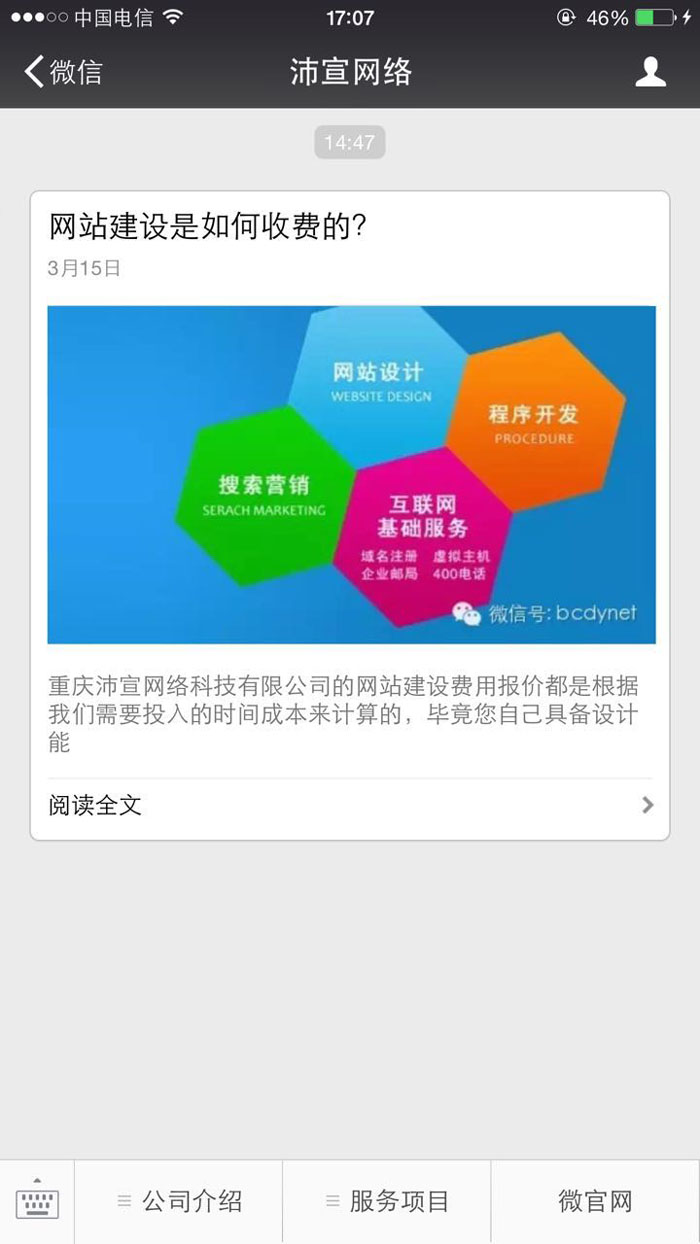 在微信公眾帳號里面就是如下效果點擊微官網就自動跳轉到微信官網上去了是不是相當的簡單呢? 有需要請撥打我們微官網的電話!請掃描和關注我們的微信服務號: