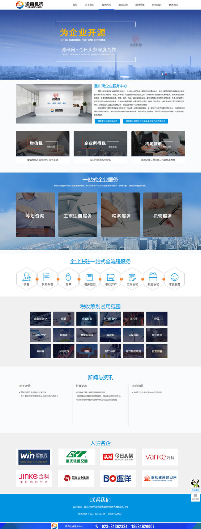 重慶渝商企業管理咨詢有限公司成立于2016年,經酉陽政府授權,是一家專門為政府招商引資的平臺,為政府提供市場化的招商引資運作。針對企業提供合理的稅收籌劃方案,提供一站式企業服務。同時可以為企業提供騰訊、今日頭條的新媒體服務。
